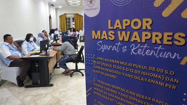 Deputi Administrasi Sekretariat Wakil Presiden, Sapto Harjono, mengungkapkan bahwa sebanyak 55 aduan diterima pada hari pertama. Posko ini awalnya menargetkan maksimal 50 laporan per hari, namun mengakomodasi lebih banyak pengadu. Terdapat sepuluh meja layanan yang beroperasi penuh, masing-masing dilayani oleh dua petugas yang menerima aduan secara langsung dari warga. “Kami mengatur waktu pelayanan agar efisien untuk 50 pengadu, tapi tetap membuka toleransi jika ada yang melebihi,” kata Sapto di Istana Wapres.