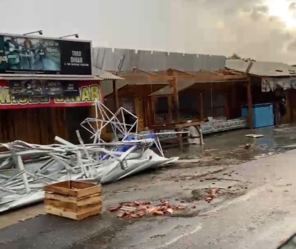 Tangkapan layar angin puting beliung merusak sejumlah rumah dan kios di Kecamatan Sukoharjo, Pringsewu, Lampung pada Senin sore (4/11)