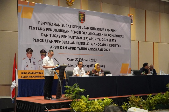 Gubernur Lampung Menyerahkan SK Keputusan Penunjukkan Pengelola Anggaran Dekonsentrasi dan Tugas Pembantuan TA 2023