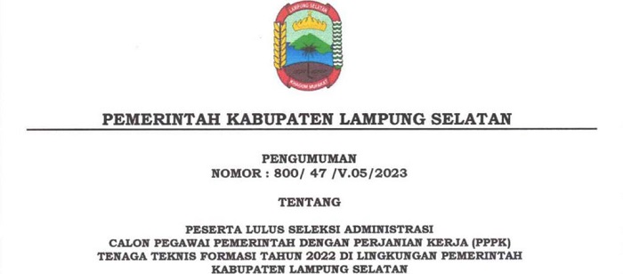 Pemkab Lampung Selatan Umumkan Peserta Lulus Seleksi Administrasi Calon PPPK Tenaga Teknis Formasi Tahun 2022