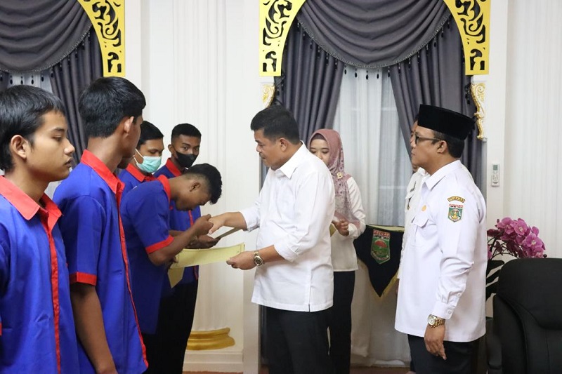 Bupati Lampung Tengah Musa Ahmad Berikan Sertifikat Pelatihan Kompetensi Kejuruan Teknis Listrik untuk 12 Pemuda