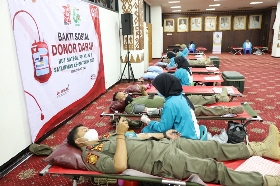 HUT Satpol PP ke-72 dan Satlinmas ke-60, Pemprov Bersama PMI Lampung Gelar Bakti Sosial Donor Darah