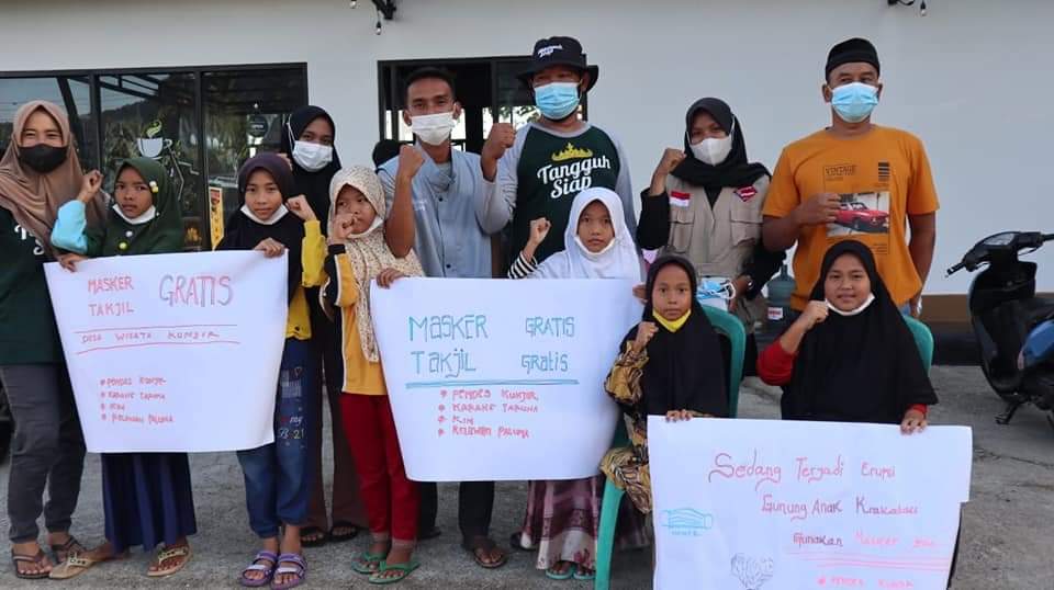 Waspada Bahaya Abu Vulkanik GAK, Pemdes Kunjir Lampung Selatan Bagikan Masker