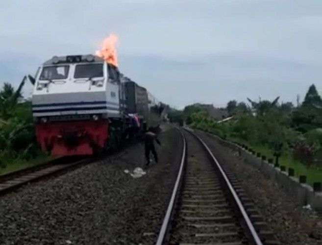 Angkut Rombongan TNI, Lokomotif Kereta Api Tanjungkarang-Baturaja Terbakar Di Jalan