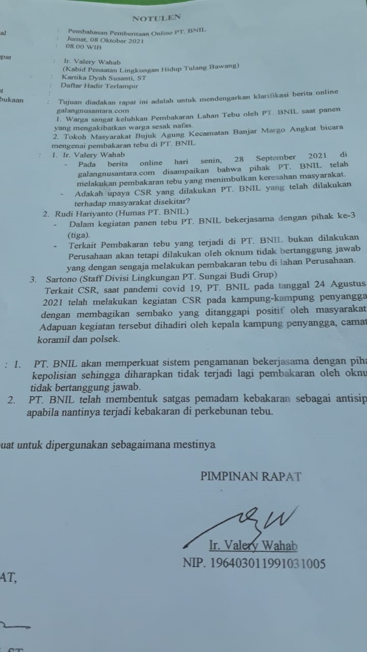 Belat belit Keterangan PT BNIL, BLHD Tulangbawang Diminta Tegas Soal Pembakaran Tebu