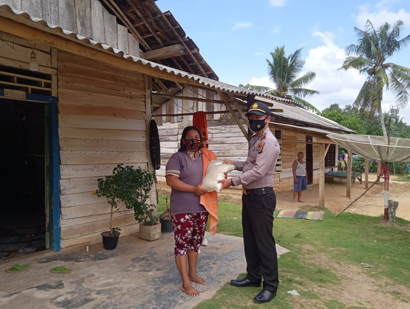 Polsek Negara Batin Salurkan Bansos untuk Warga Miskin Terdampak Covid-19