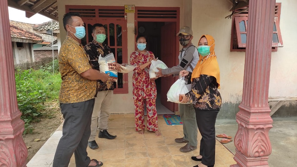 Kades Pematang Lampung Selatan Bagi Sembako Warganya Yang Isoman