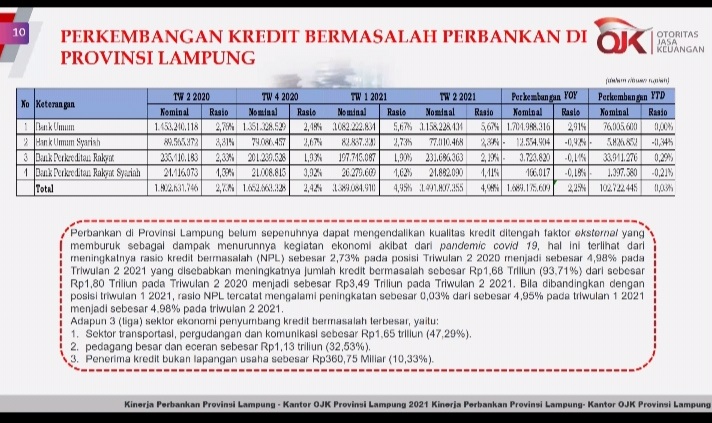 Kinerja Industri Jasa Keuangan Semester 1 Tahun 2021, pada pertumbuhan Penyaluran Kredit Perbankan Triwulan II 2021 Lampung Tumbuh 6,34%