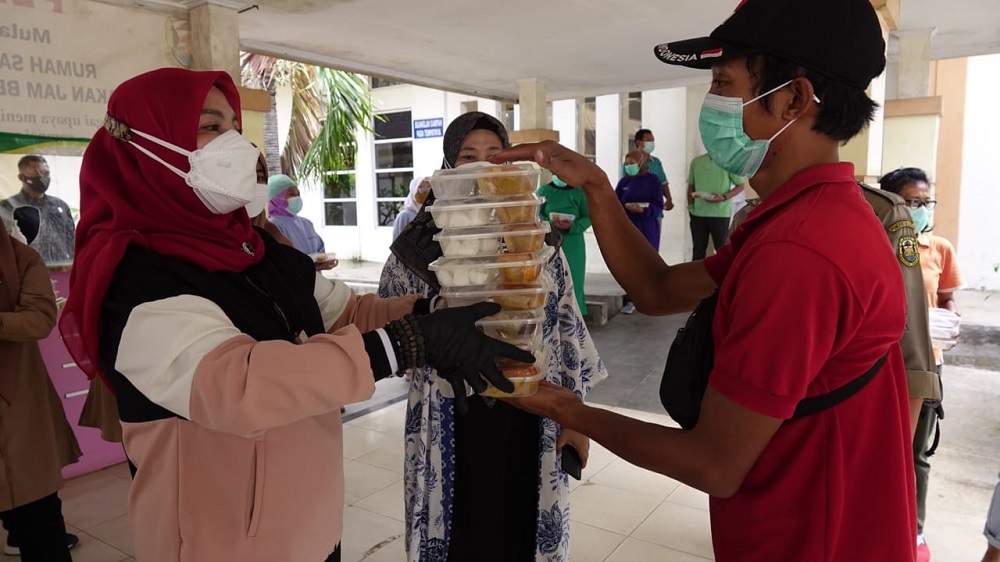 Walikota Eva Kunjungi Tenaga Kesehatan dan Bagi Nasi Rendang