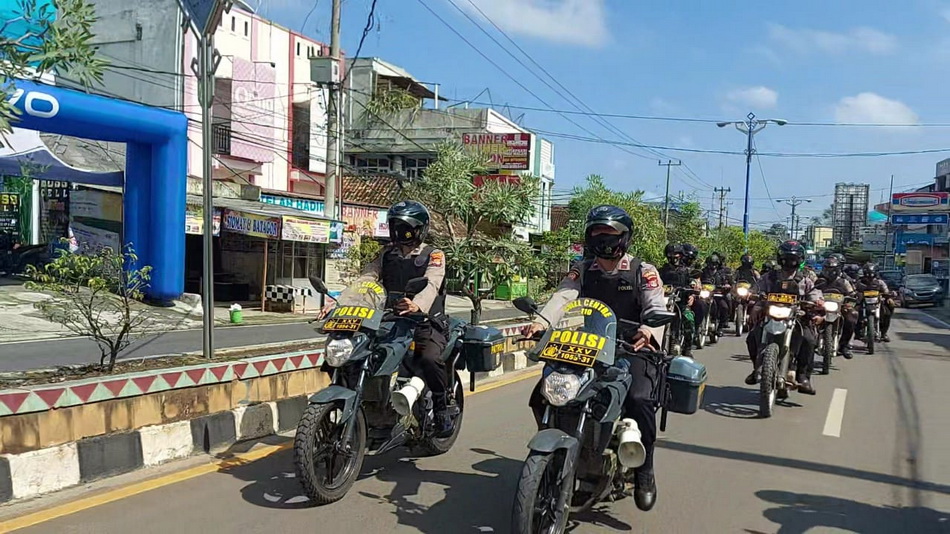 Polres Lampung Utara Gelar Patroli Skala Besar Bersama Brimob dan TNI