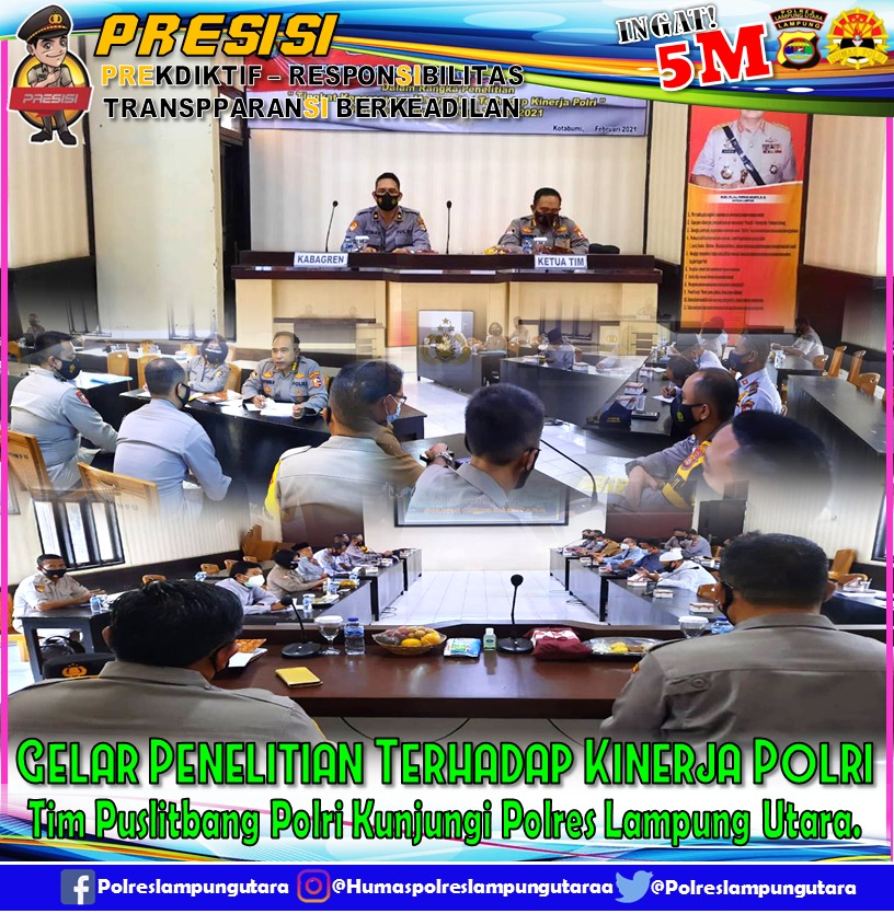Gelar Penelitian Terhadap Kinerja Polri, Tim Puslitbang Polri Kunjungi Polres Lampung Utara