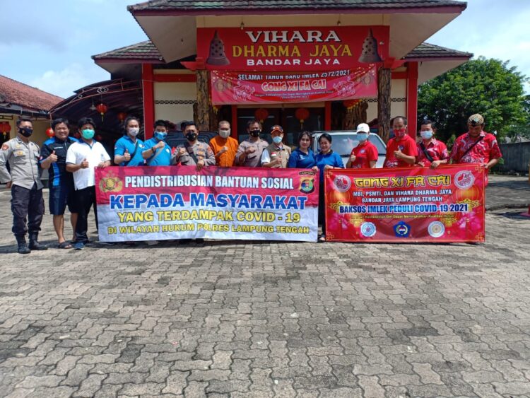 Jelang Imlek, Polres Lamteng-Vihara Salurkan Bantuan Sembako