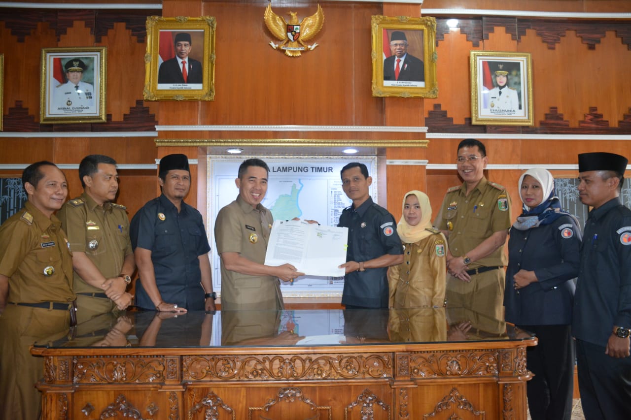 Lampung Timur – Bupati Lampung Timur Zaiful Bokhari menerima audiensi Bawaslu dan sekaligus penandatanganan Naskah Perjanjian Hibah Daerah (NPHD) Pilkada Tahun 2020, diruang kerjanya, Selasa (5/11).