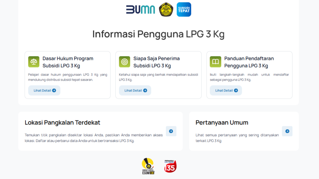 “Masyarakat dapat mencari pangkalan resmi terdekat melalui link https://subsiditepatlpg.mypertamina.id/infolpg3kg atau menghubungi Call Centre 135 untuk mendapatkan informasi lebih lanjut,” jelas Heppy dalam keterangan resminya.