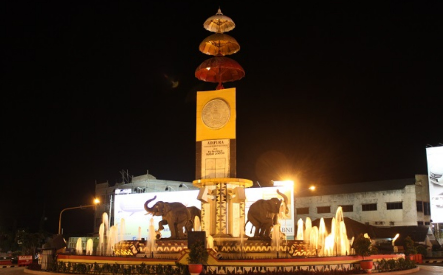 Tugu Adipura di Kota Bandar Lampung pada malam hari
