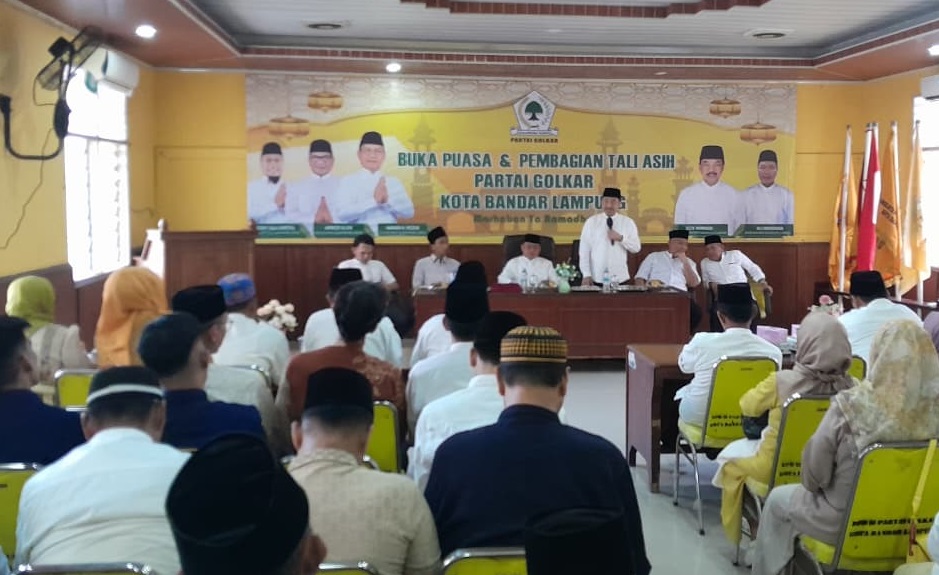 Gantanews.co, Bandar Lampung — Dewan Pimpinan Daerah (DPD) Partai Golkar Kota Bandar Lampung menggelar kegiatan buka puasa bersama yang dirangkaikan dengan pembagian tali asih kepada para pengurus, pimpinan kecamatan, dan pimpinan kelurahan. Kegiatan tersebut berlangsung di Aula Golkar Kota Bandar Lampung, Sabtu (14/3/2026).