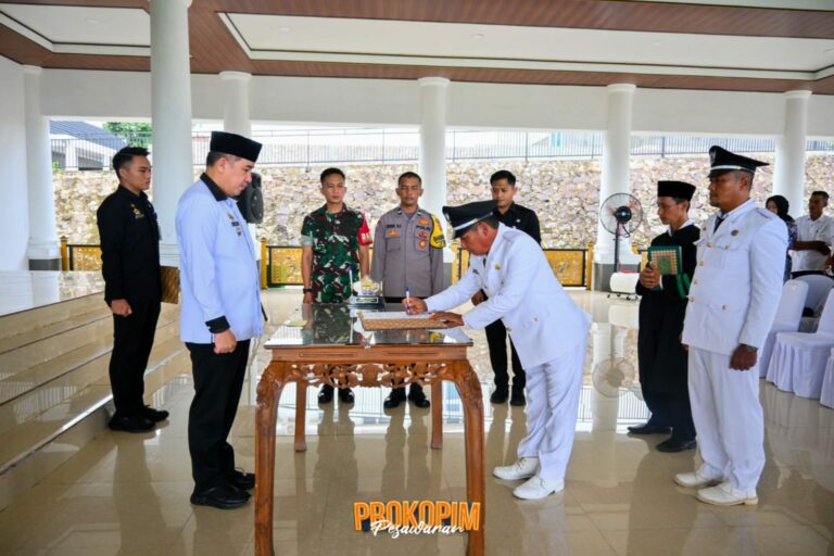 Gantanews.co – Bupati Pesawaran Dendi Ramadhona melantik Penjabat (Pj) Kepala Desa Grujugan Baru, Pujodadi dan Purworejo Kecamatan Negeri Katon pada Rabu, (15/1/2025) di GSG Lamban Agung, Komplek Rumah Dinas Bupati Pesawaran.