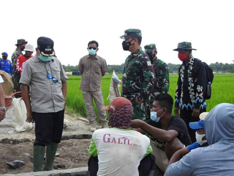 GANTANEWS.CO,Lampung Timur – Bupati Lampung Timur H. Dawam Rahardjo didampingi Dandim 0429/Lamtim Letkol Kav Muhammad Darwis meninjau lokasi TNI Manunggal Membangun Desa (TMMD) ke-110 di Desa Sukorahayu, Kecamatan Labuhan Maringgai, Minggu (28/2/2021).