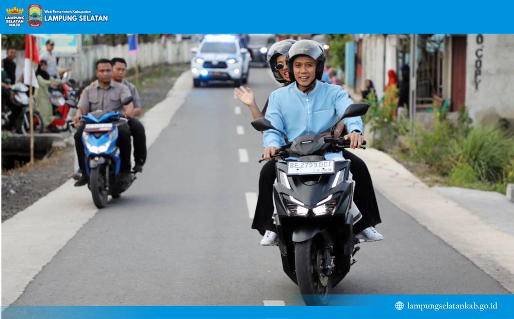 Gantanews.co – Dengan mengenakan helm dan kain sarung sederhana, Bupati Lampung Selatan, Radityo Egi Pratama, tampak berboncengan sepeda motor bersama sang istri, Zita Anjani, menuju lokasi peresmian ruas jalan Sukamarga-Bulok (R.072) di Desa Bulok, Kecamatan Kalianda, Rabu (22/10/2025).