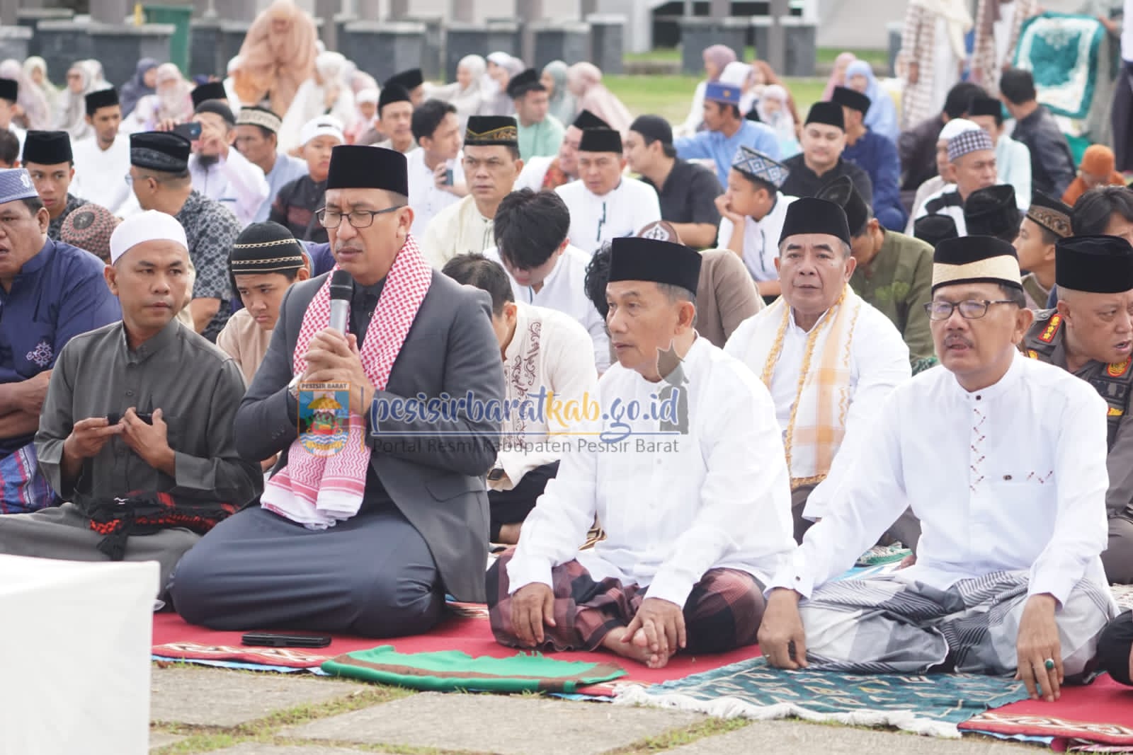Gantanews.co – Bupati – Wakil Bupati Pesisir Barat (Pesibar), Dr. Drs, Agus Istiqlal, S.H., M.H., – A. Zulqoini Syarif, S.H., mengikuti Sholat Idul Fitri 1 Syawal 1445 Hijriah, di halaman komplek perkantoran Pemkab Pesibar, Rabu (10/4/2024).