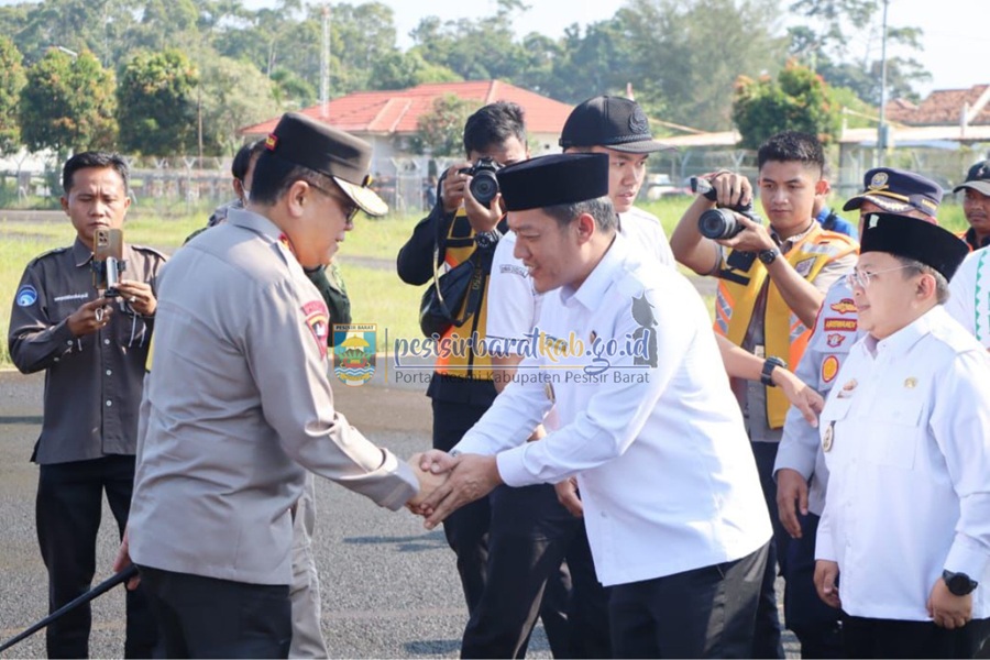 Gantanews.co, Pesisir Barat — Bupati – Wakil Bupati Pesisir Barat (Pesibar), Dedi Irawan – Irawan Topani, S.H., M.Kn., menyambut kunjungan Kapolda Lampung, Irjen. Pol. Helmy Santika, S.H., S.I.K., M.Si., dan Komandan Korem (Danrem) 043/Garuda Hitam (Gatam) Provinsi Lampung, Brigjen. TNI. Rikas Hidayatullah, S.E., M.M., di Bandara Muhammad Taufiq Kiemas, Kamis (12/6/2025).