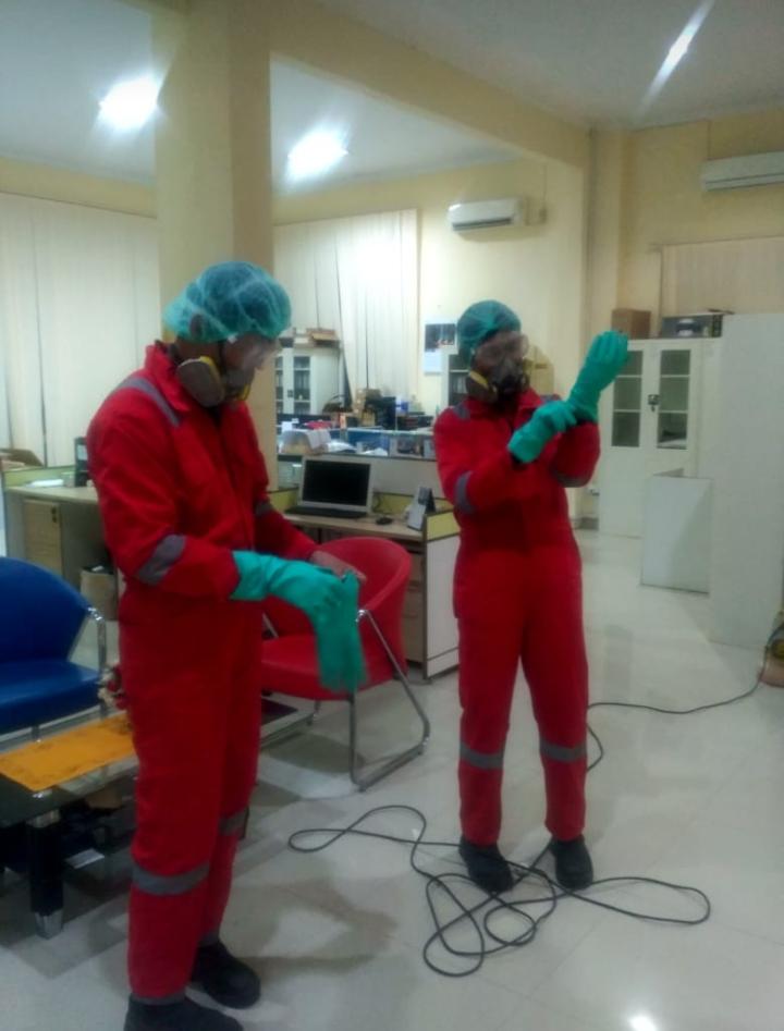 PLN UID Lampung Semprot Disinfektan Dilingkungan Kantor