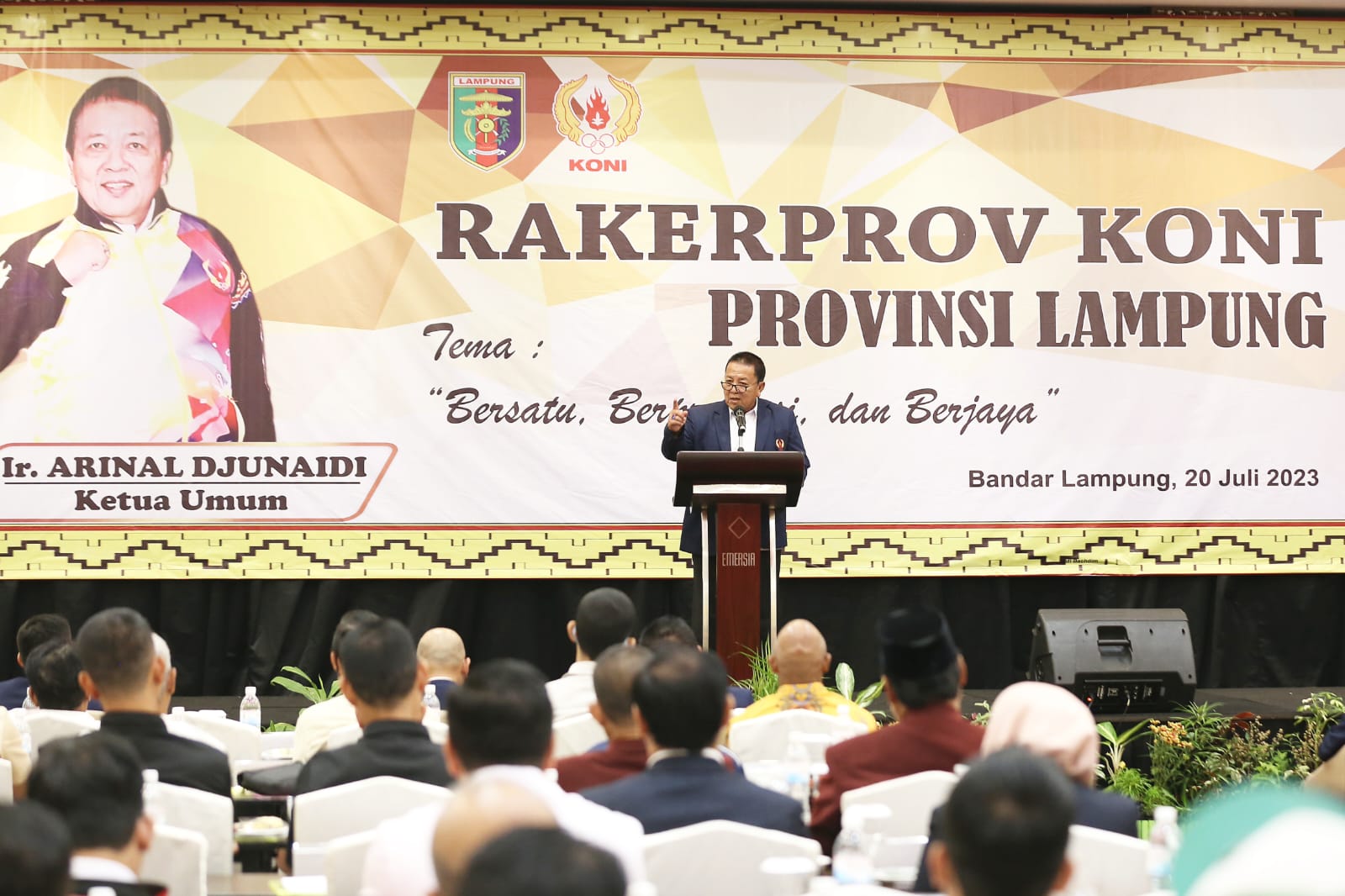 Gubernur Arinal Buka Rakerprov KONI Lampung, Buka Peluang Sahkan Cabor Baru: Selancar Ombak, Beladiri Campuran dan Korfball