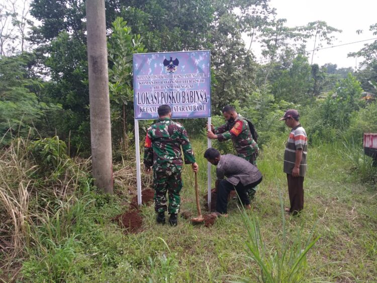 Koramil Labuhan Maringgai Bersama Warga Bersihkan Lokasi Pos Babinsa