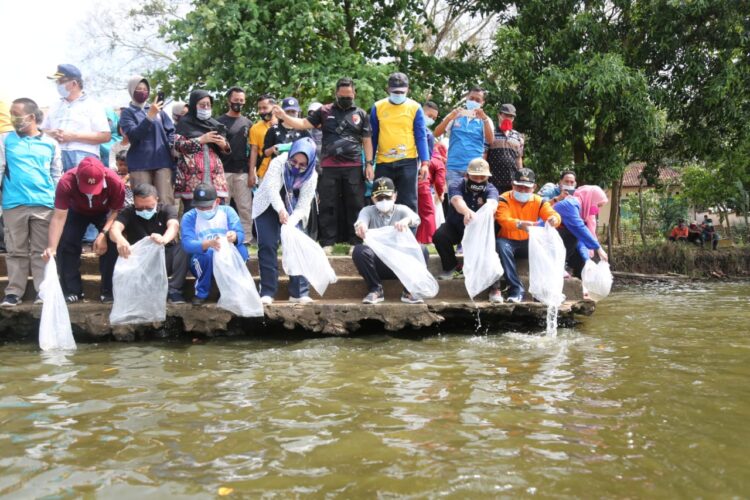 Pjs Bupati Lamtim Tabur 21 Ribu Bibit Ikan di Danau Beringin Indah