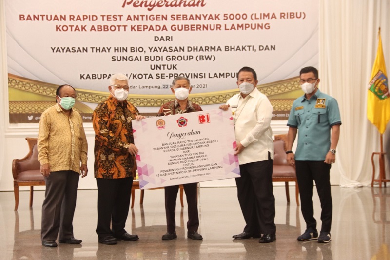 Gubernur Lampung Terima Bantuan 5000 Rapid Test dari Yayasan Thay Hin Bio, Dharma Bhakti, dan Sungai Budi Group