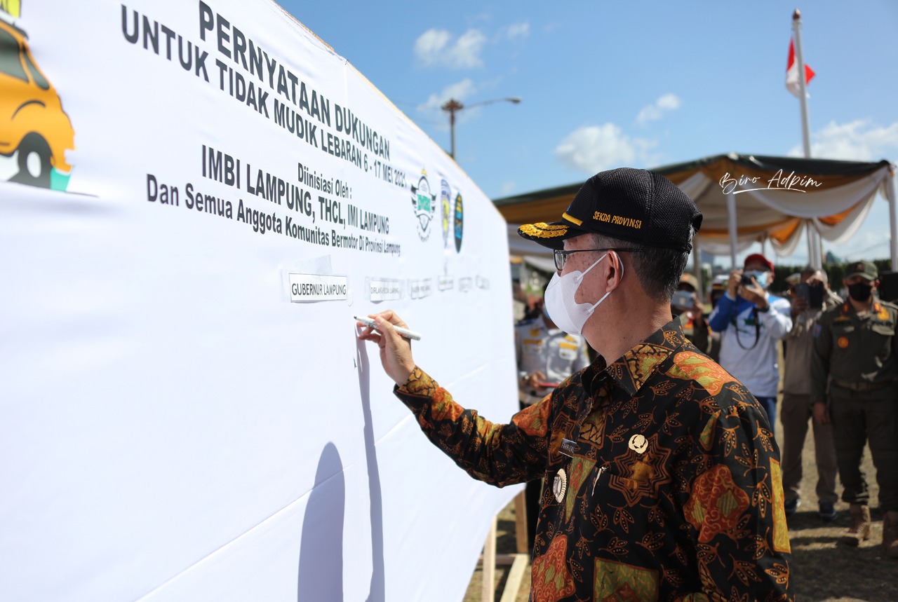 Cegah Meluasnya Penyebaran Covid-19, Pemprov Lampung Lakukan Ikrar Bersama Komunitas Kendaraan Untuk Tidak Mudik Lebaran
