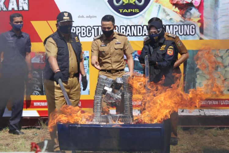 Upayakan Peningkatan Penerimaan Negara, Gubernur Pimpin Pemusnahan Rokok dan Minuman Keras Ilegal