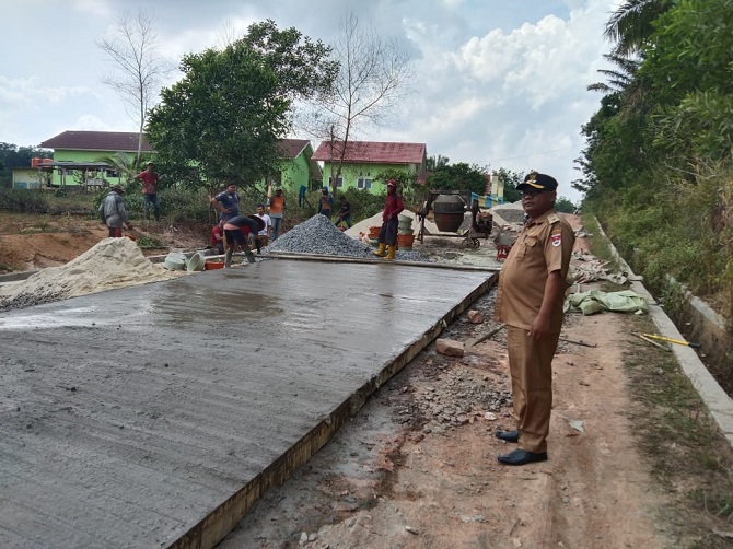 Dikerjakan Masyarakat, Pemdes Adi Luhur Kecamatan Panca Jaya Bangun Jalan Rabat Beton