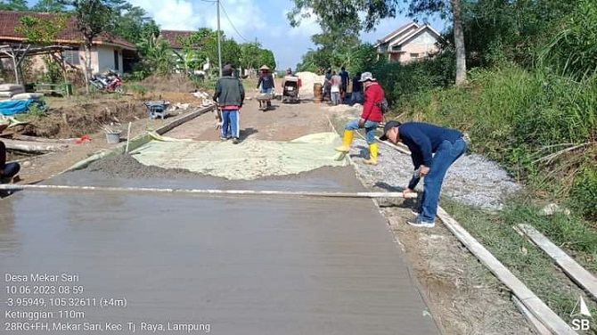 Pemdes Mekarsari Kecamatan Tanjungraya Mesuji Lanjutkan Pembangunan Jalan Rabat Beton Tahap II