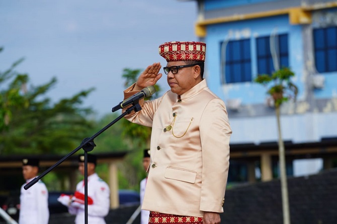 Pimpin Upacara HARDIKNAS 2023: Bupati Mesuji Sulpakar Tampil Gagah Pakai Kopiah Khas Lampung