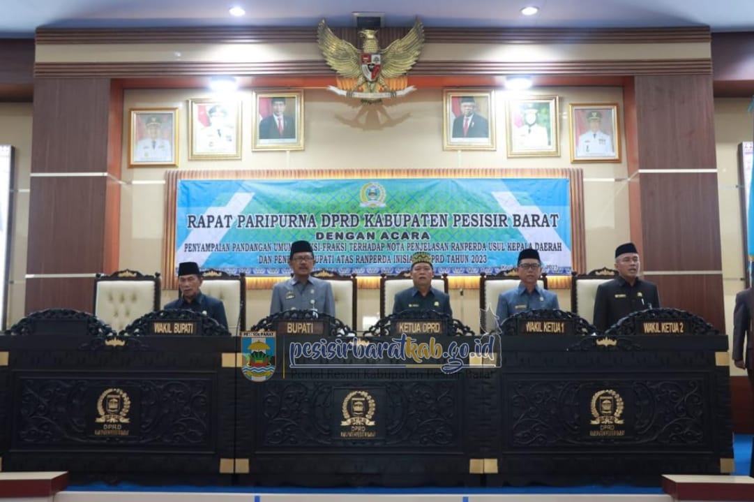 Pemkab Pesisir Barat Hadiri Rapat Paripurna Dewan Dengan Agenda Pandangan Fraksi-Fraksi Terhadap Nota Penjelasan Rancangan Peraturan Daerah Usul Kepala Daerah Dan Tanggapan Pemerintah Ranperda Inisiatif DPRD