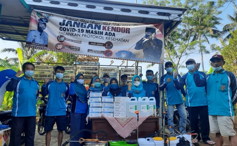 Pekon Tanjung Jati Kota Agung Timur Tanggamus Semprot Disinfektan dan Bagi Masker