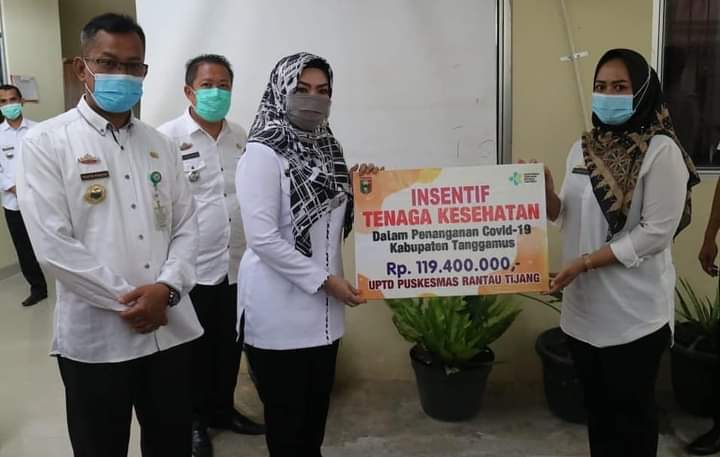 Simbolis, Dewi Serahkan Insentif Tenaga Kesehatan Penanganan Covid-19 Tanggamus