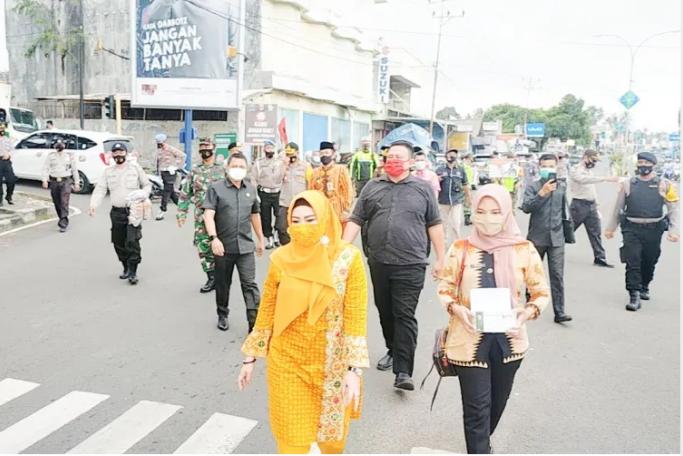 Forkopimda Tanggamus Bagikan Seribu Masker dan Himbau Masyarakat Patuhi Prokes