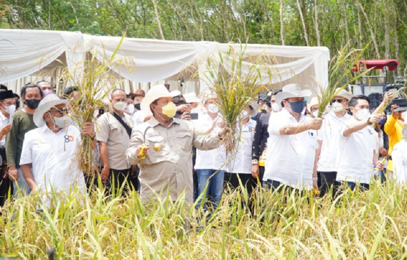 Gubernur Arinal, Airlangga dan Bang Ical Panen Padi Tubaba
