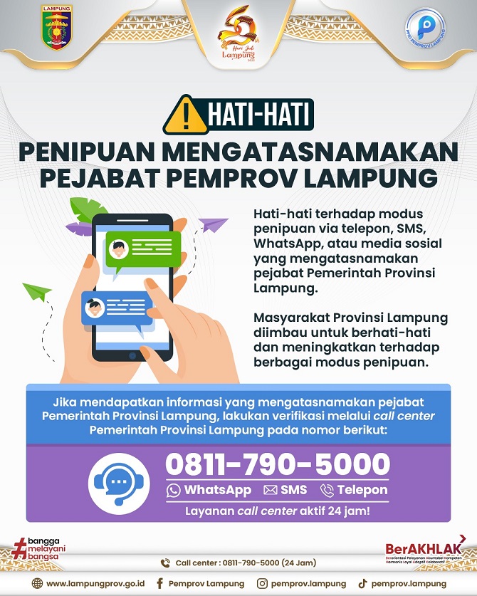 Hati-Hati Penipu Mengatasnamakan Pejabat Pemprov Lampung