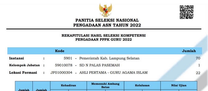 PENGUMUMAN HASIL SELEKSI CALON PPPK JABATAN FUNGSIONAL GURU FORMASI TAHUN 2022 Lampung Selatan, Unduh di Sini