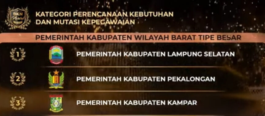 BKN AWARD 2022: Pemkab Lamsel Raih Penghargaan Terbaik Pertama Pengelola Manajemen ASN