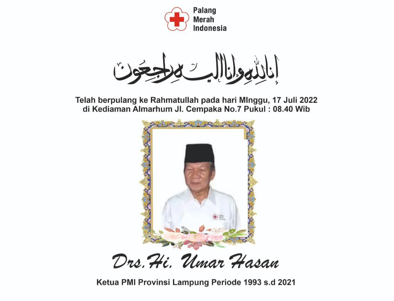 PMI Way Kanan Berduka atas Meninggalnya Bapak PMI Lampung Umar Hasan