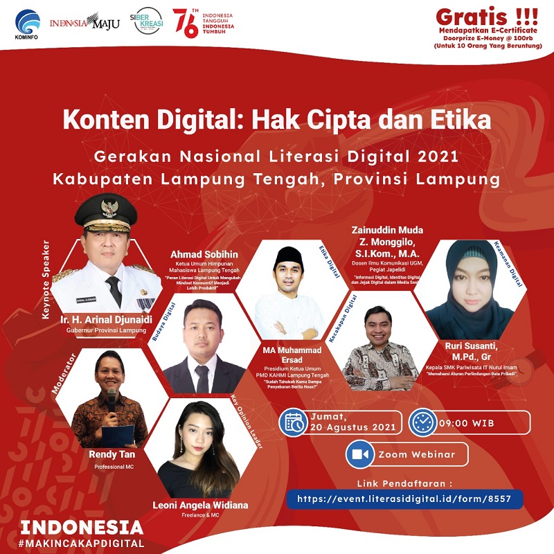 Webinar GN Literasi Digital di Lampung Tengah Bertajuk “Konten Digital: Hak Cipta dan Etika”