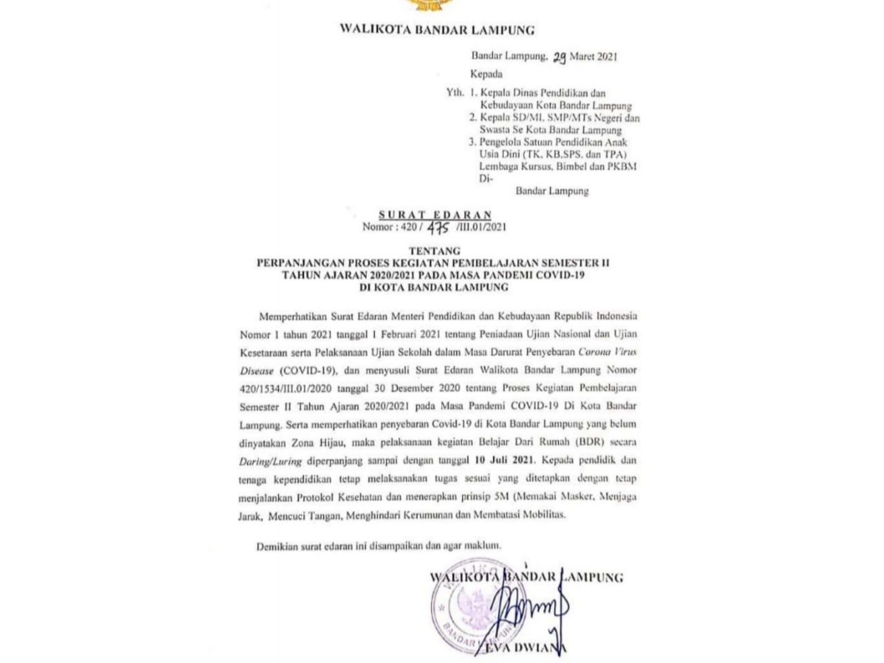 Pembelajaran Secara Daring Di Bandar Lampung Diperpanjang Hingga 10 Juli 2021