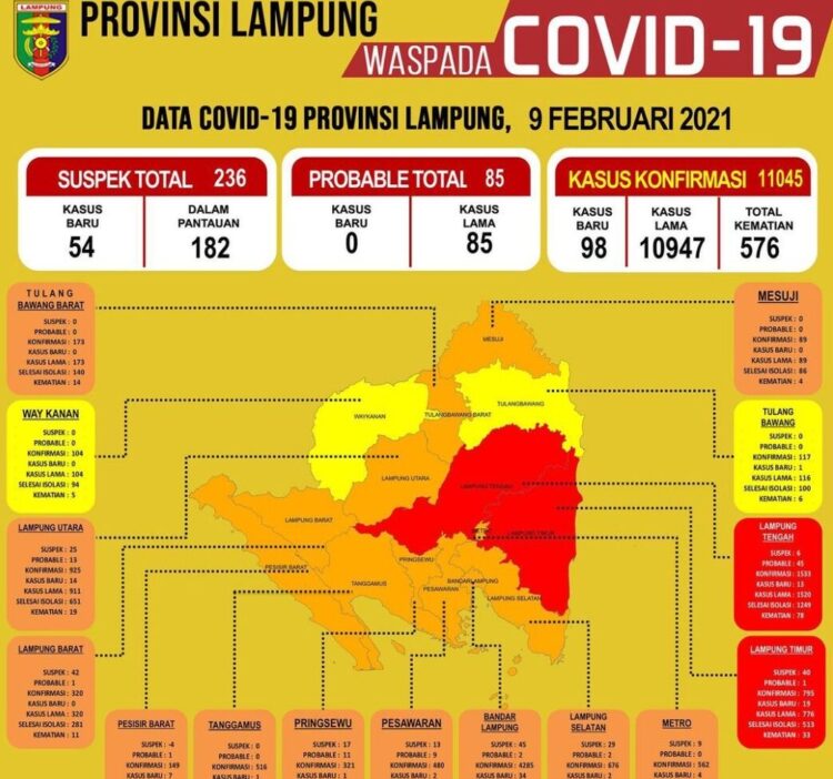 Bandar Lampung Turun ke Zona Orange, Lamteng Masuk Zona Merah