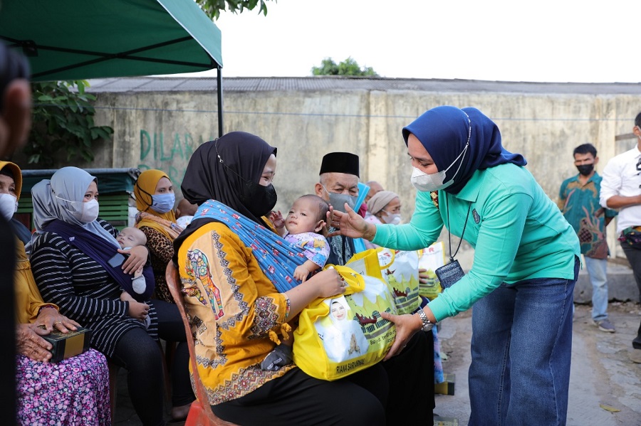TP PKK Provinsi Lampung dan Darma Wanita Persatuan Provinsi Lampung Bagikan Sembako di Kampung Kuala Masjid Kecamatan Panjang Bandarlampung