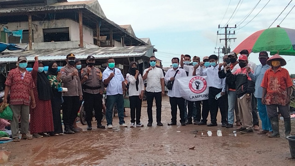 Pospera Mesuji Kembali Beraksi, Kali Ini Bagi Masker dan Gotong Royong di Pasar KTM