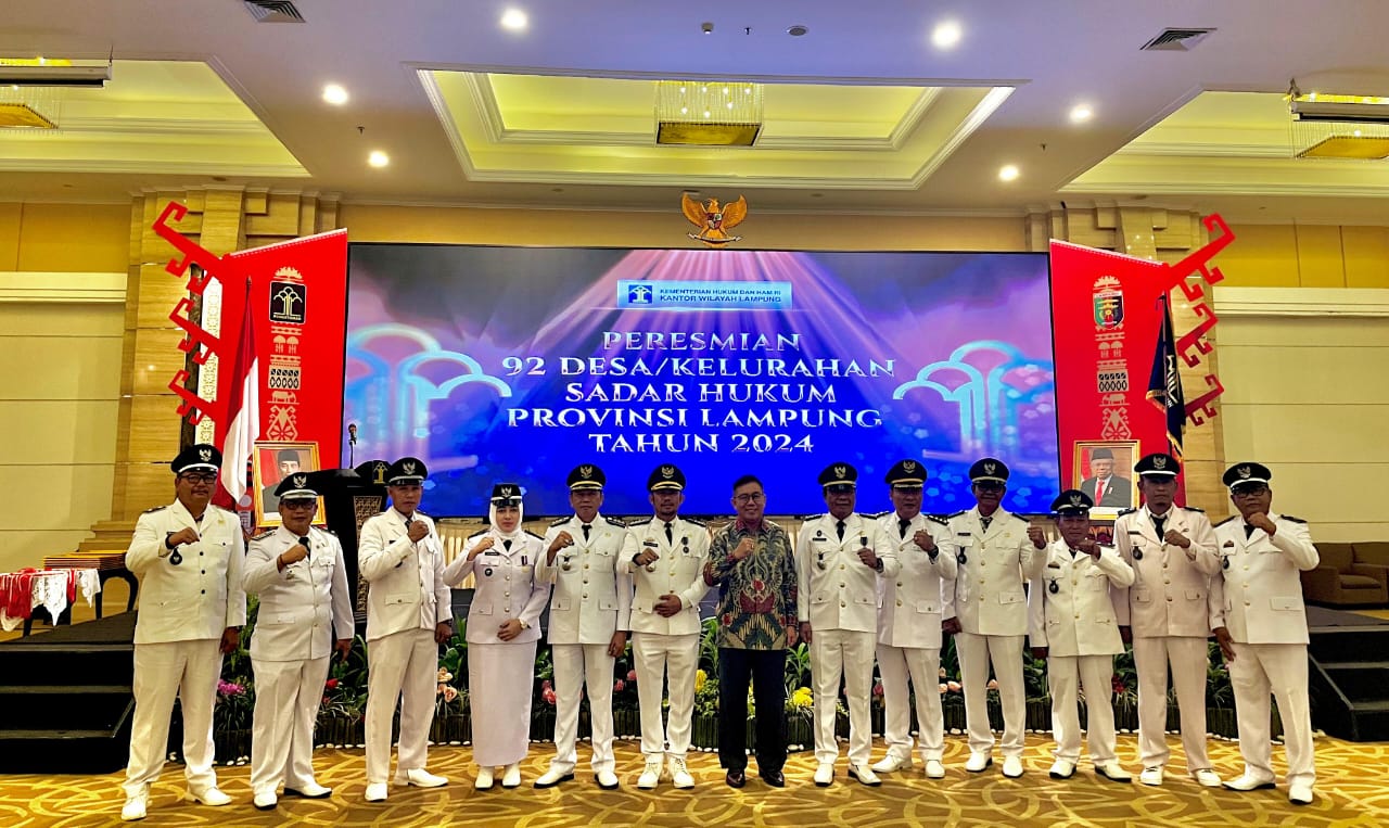 Gantanews.co – Delapan Kepala Desa di empat kecamatan dari tujuh kecamatan di Kabupaten Mesuji menerima penghargaan Anubhawa Sasana Desa/Kelurahan Sadar Hukum dari Kementerian Hukum dan Hak Asasi Manusia (HAM) Republik Indonesia. Penghargaan ini diberikan pada acara yang digelar di Hotel Swiss Bell Bandar Lampung pada Selasa (25/6/2024).